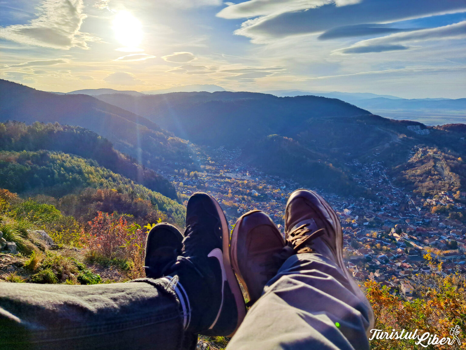 Când am ajuns noi pe Vârful Tâmpa, era pe înserate. Astfel că am prins o lumină extraordinară de poze. Am fi vrut să vedem și apusul, însă ne-am amintit că ne mai așteptau aproape 2 ore de traseu pentru a ajunge în oraș.
