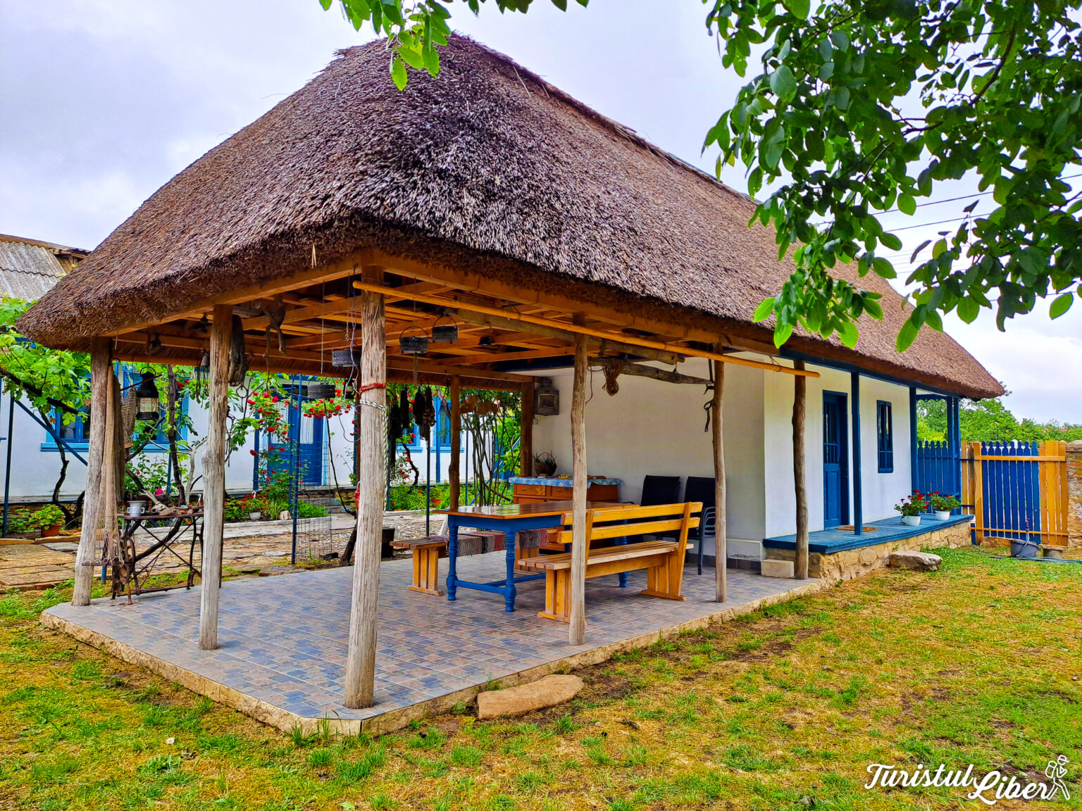 Îți poți petrece timpul liber în curtea umbroasă sau pe terasa acoperită cu stuf.